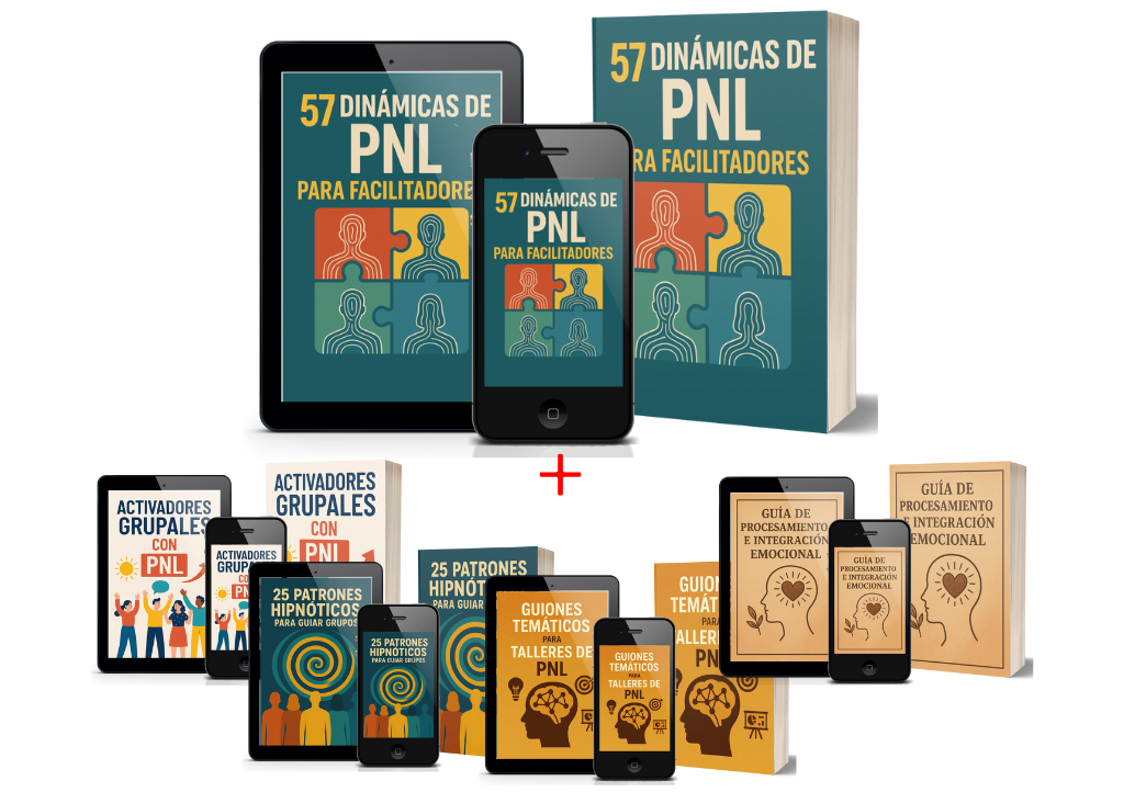 📖57 Dinámicas de PNL para Facilitadores Un manual práctico con 57 dinámicas de PNL listas para aplicar en sesiones grupales.
